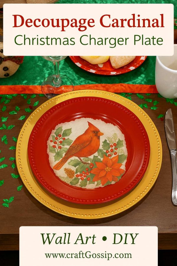 Every holiday season I like to bring out one or two new handmade décor pieces for the house. It’s not about spending a fortune on decorations but rather adding a personal, heartwarming touch. This year’s favorite? A decoupaged robin charger plate made from Dollar Tree finds. Whether you hang it as wall art, use it as a festive dinner charger, or place it in the center of your Christmas tablescape, this project adds that perfect cozy charm to your holiday setting.